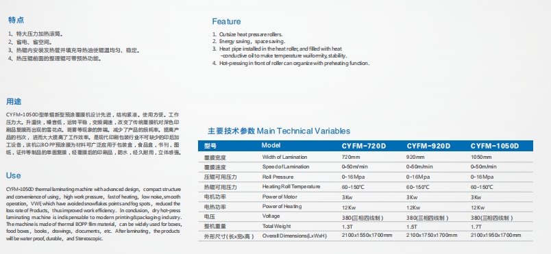 CYFM-720D/920D/1050D 單輥筒新型預(yù)涂覆膜機
