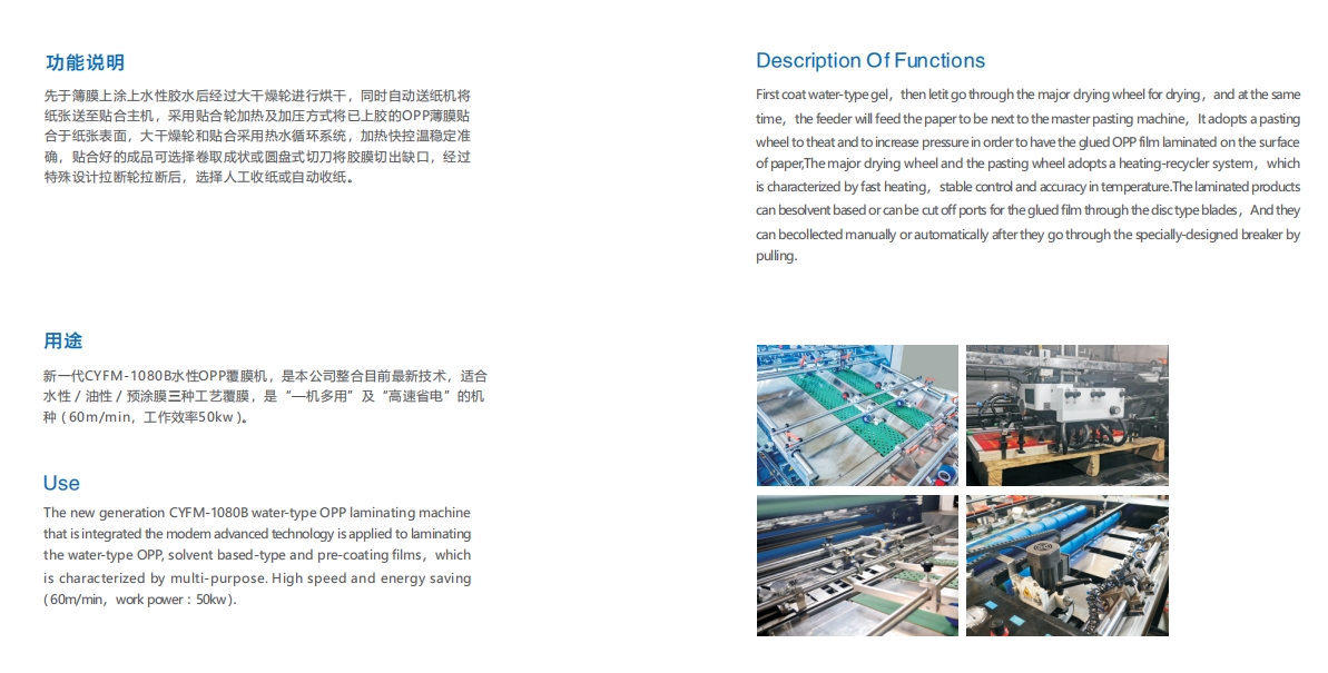 >> CYFM-1080B 全自動除粉OPP覆膜機 ( 水性/油性膠水及預涂膠膜)( 鏈刀)